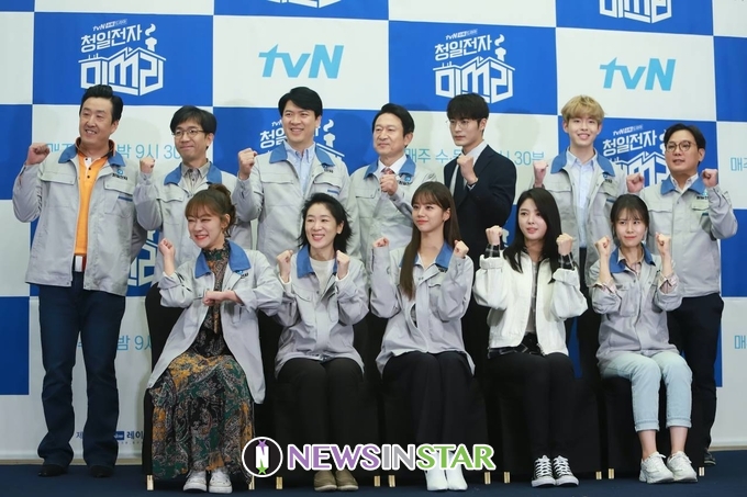 14일 오후 서울시 마포구 상암동 스탠포드호텔에서 tvN 수목드라마 '청일전자 미쓰리'의 기자 간담회가 열려 배우 이해리,김상경,현봉식,이화룡,박혜경,백지원,이초아,김도연,김기남,엄현경,차서원,김응수가 참석해 포토타임을 갖고 있다.