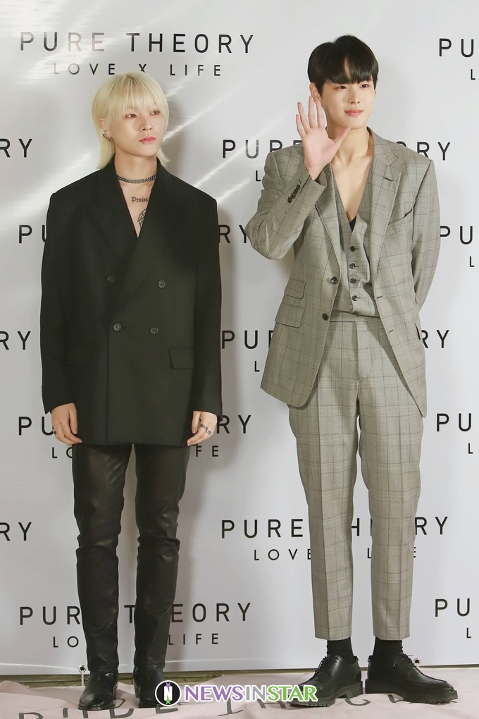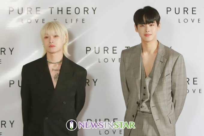 14일 오후 서울시 용산구 한남동 어퍼 콜라보에서 코스메틱 브랜드 '퓨어띠어리(PURE THEORY)'의 론칭 파티가 열려 에이핑크 김남주, 초롱, 보미, 여자친구 소원, 빅스 혁, 펜타곤 키노, 빅톤, 배우 문가영, 한지원 등이 참석해 빅톤 한세, 최병찬이 포토타임을 갖고 있다.