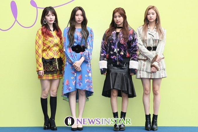 16일 오전 서울시 중구 동대문디자인플라자(DDP)에서 '2020 S/S 서울패션위크(SEOUL FASHION WEEK S/S 2020)' 빅팍(BIGPARK) 박윤수 디자이너 컬렉션이 열려 걸그룹 아이즈원 사쿠라, 이채연, 강혜원, 김민주가 참석해 포토타임을 갖고 있다.