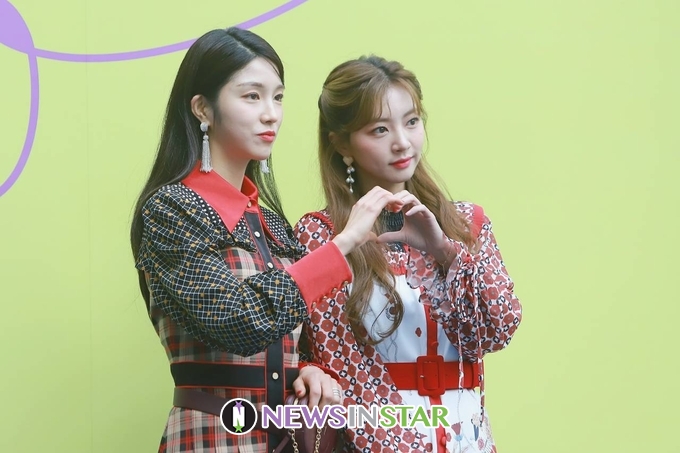 17일 오전 서울시 중구 동대문디자인플라자(DDP)에서 '2020 S/S 서울패션위크(SEOUL FASHION WEEK S/S 2020)' 두칸(DOUCAN) 최종훈 디자이너의 컬렉션이 열려 라붐 해인, 지엔이 참석해 포토타임을 갖고 있다.