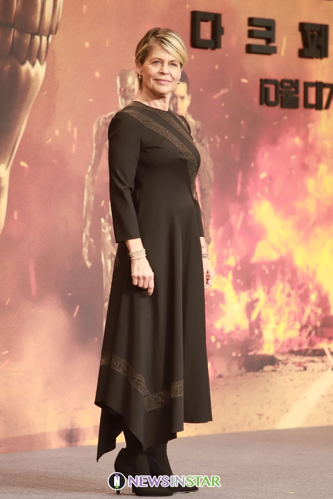 21일 오후 서울시 종로구 당주동 포시즌스호텔서울에서 영화 '터미네이터: 다크 페이트 (Terminator: Dark Fate)'의 내한 기자 간담회가 열려 린다 해밀턴이 참석해 포토타임을 갖고 있다.