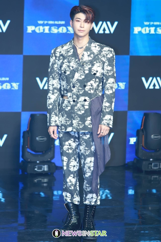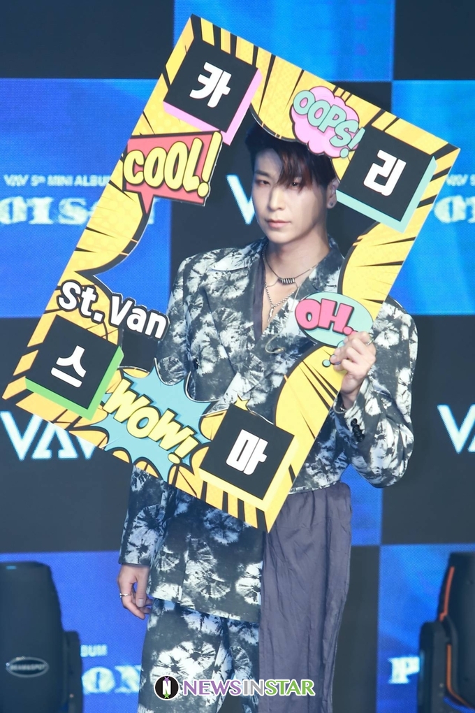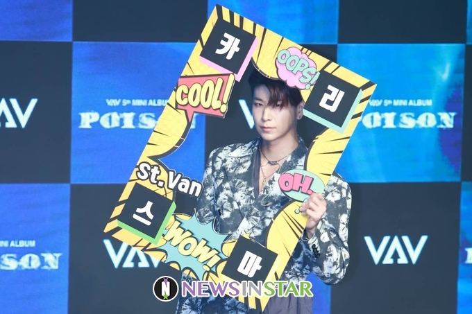 21일 오후 서울시 강남구 청담동 일지아트홀에서 보이 그룹 'VAV(브이에이브이)'의 다섯번째 미니앨범 ''Poison(포이즌)' 발매 기념 쇼케이스가 열려 세이트 반이 포토타임을 갖고 있다.