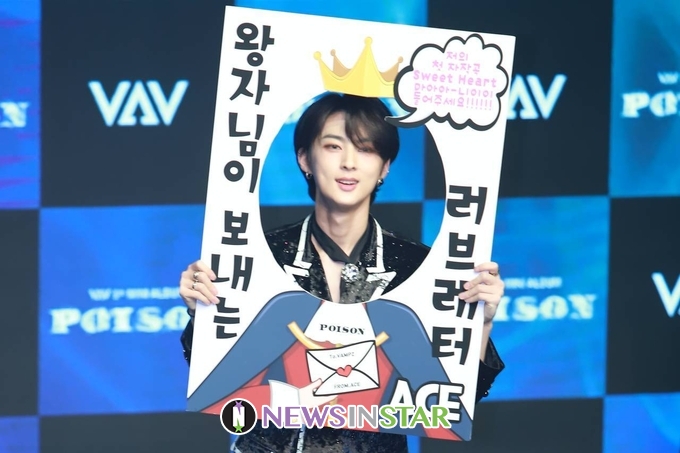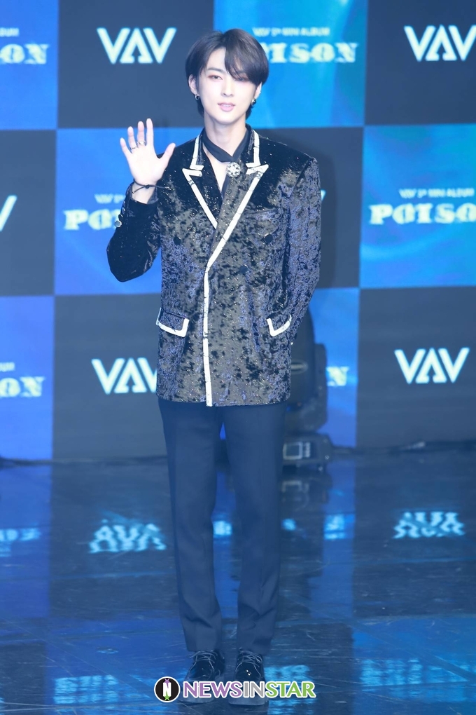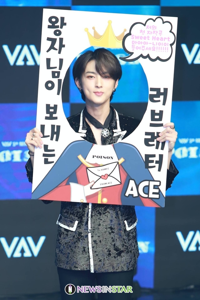 21일 오후 서울시 강남구 청담동 일지아트홀에서 보이 그룹 'VAV(브이에이브이)'의 다섯번째 미니앨범 ''Poison(포이즌)' 발매 기념 쇼케이스가 열려 에이스가 포토타임을 갖고 있다.