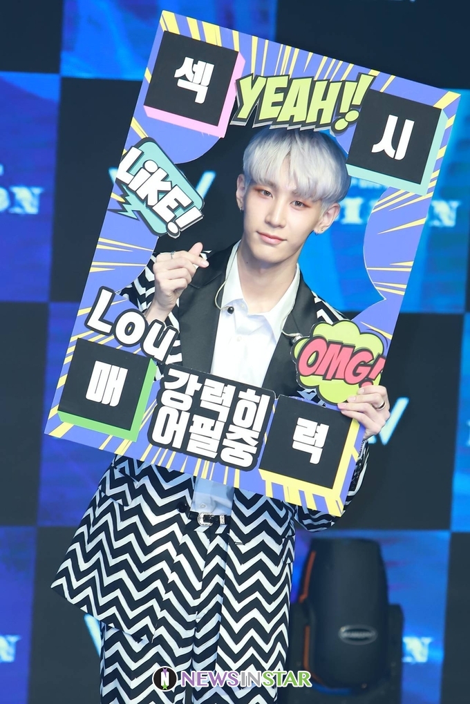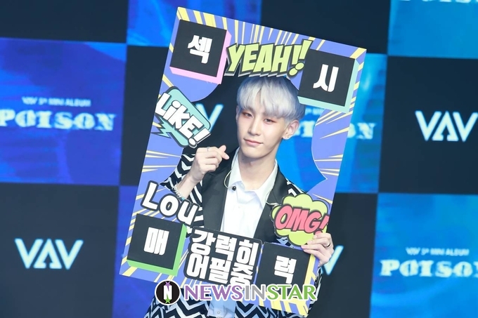 21일 오후 서울시 강남구 청담동 일지아트홀에서 보이 그룹 'VAV(브이에이브이)'의 다섯번째 미니앨범 ''Poison(포이즌)' 발매 기념 쇼케이스가 열려 로우가 포토타임을 갖고 있다.