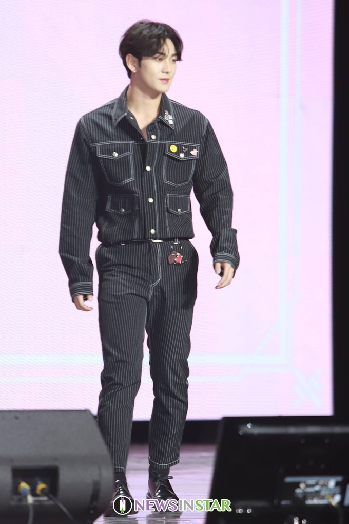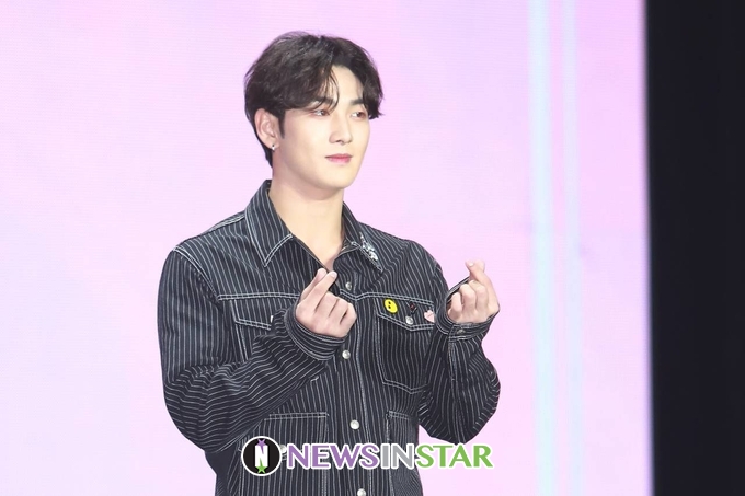 21일 오후 서울시 동대문구 회기동 경희대학교 평화의 전당에서 '뉴이스트(NU'EST)' 일곱번째 미니앨범 'The Table(더 테이블)' 발매 기념 쇼케이스가 열려 백호가 포토타임을 갖고 있다.