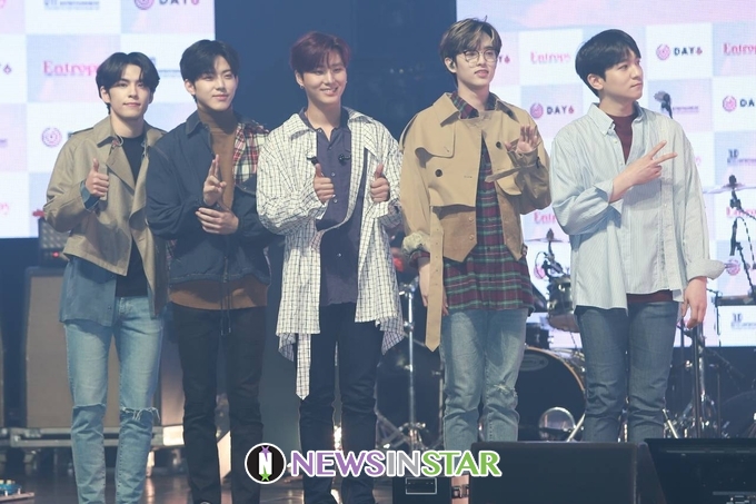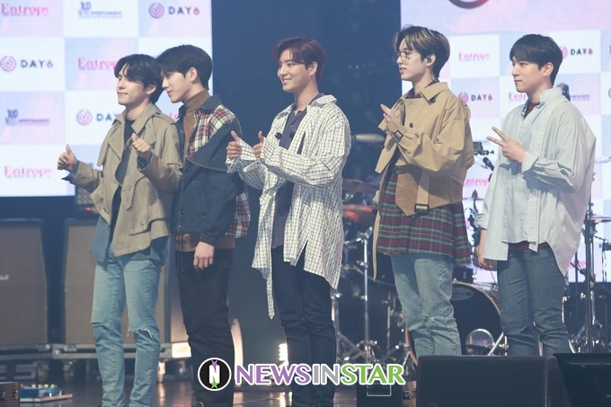 22일 오후 서울시 광진구 광장동 예스24 라이브홀에서 'Day6(데이식스)'의 정규 3집 'The Book Of Us : Entropy'(더 북 오브 어스 : 엔트로피) 발매 기념 쇼케이스가 열려 단체 포토타임을 갖고 있다.