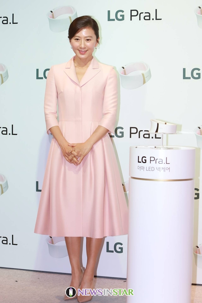24일 오전 서울시 강남구 청담동 송은 아트스페이스에서 LG전자 프라엘 '더마 LED 넥케어' 론칭 쇼케이스 '코어 라이트' 행사가 열려 홍보모델 김희애가 참석해 포토타임을 갖고 있다.