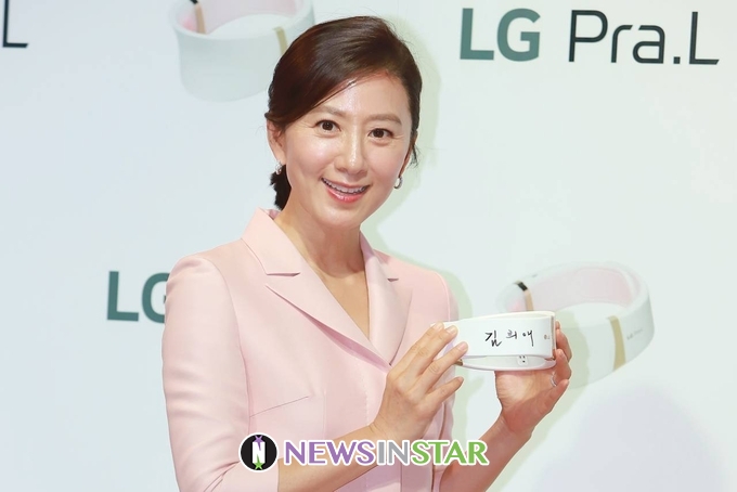 24일 오전 서울시 강남구 청담동 송은 아트스페이스에서 LG전자 프라엘 '더마 LED 넥케어' 론칭 쇼케이스 '코어 라이트' 행사가 열려 홍보모델 김희애가 참석해 포토타임 후 제품에 사인을 남기고 있다.