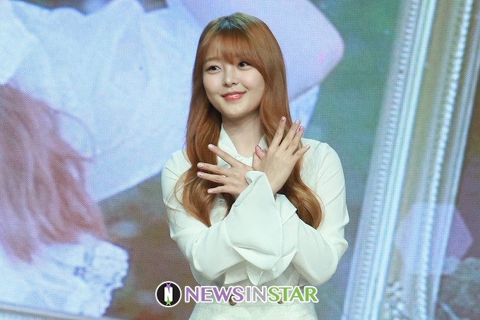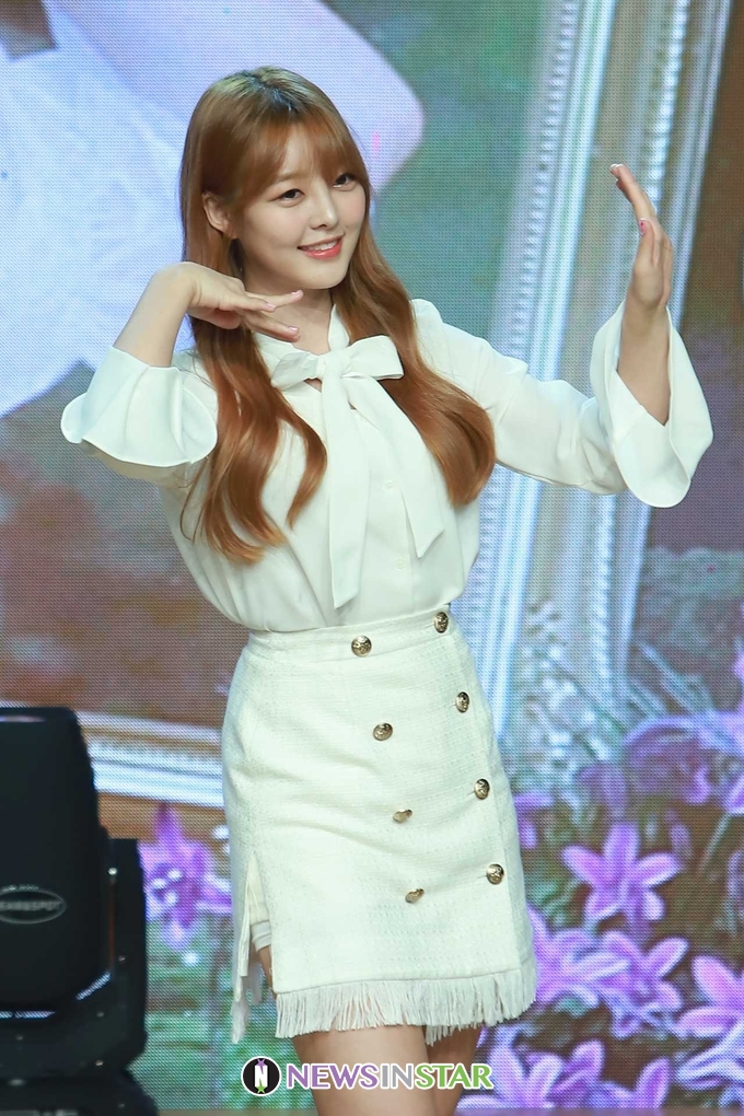 24일 오전 서울시 강남구 청담동 일지아트홀에서 신인 걸그룹 아리아즈(ARIAZ)의 첫번째 미니앨범 '그랜드 오페라' 발매 기념 쇼케이스가 열려 효경이 포토타임을 갖고 있다.