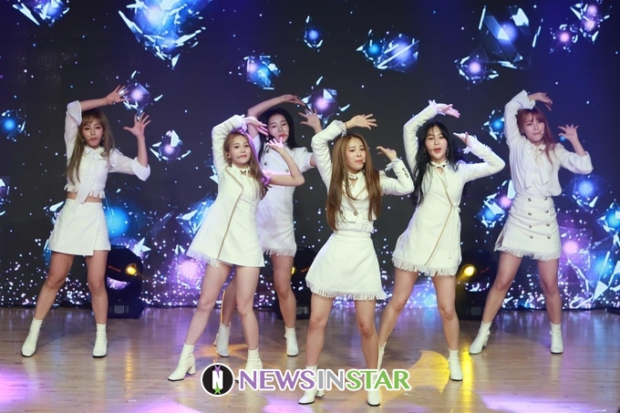 24일 오전 서울시 강남구 청담동 일지아트홀에서 신인 걸그룹 아리아즈(ARIAZ)의 첫번째 미니앨범 '그랜드 오페라' 발매 기념 쇼케이스가 열려 타이틀곡 '까만 밤의 아리아' 무대를 선보이고 있다.