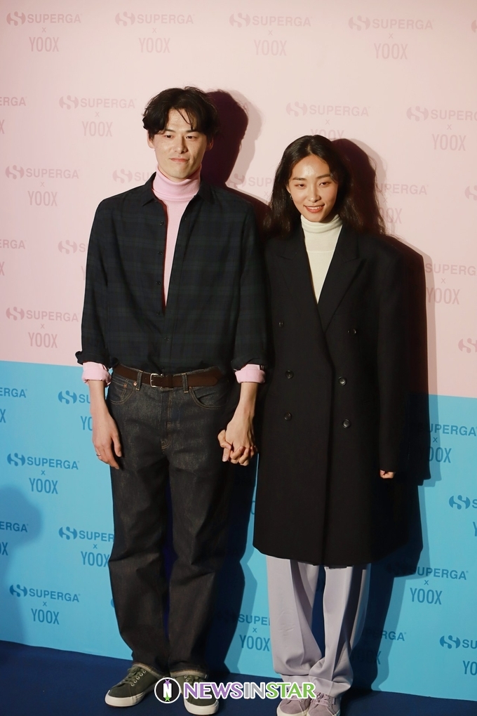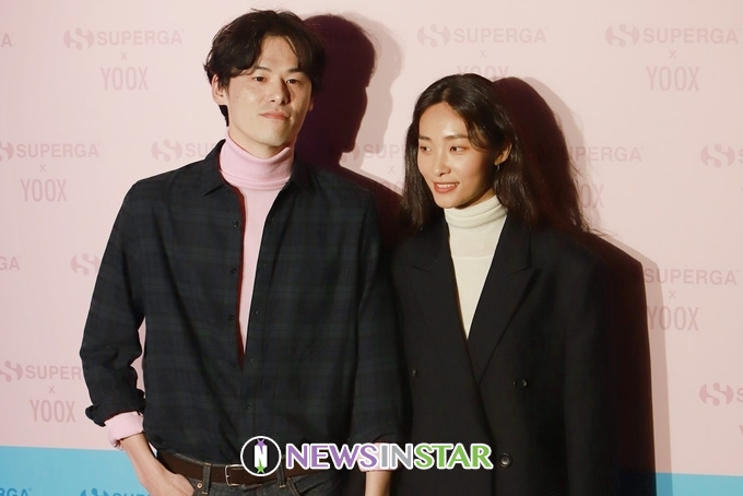 24일 오후 서울시 강남구 신사동 애슐린 갤러리에서 육스(YOOX.COM)가 수페르가(Superga)와 함께 익스클루시브 커플 슈즈 컬렉션런칭을 기념해 모델 김원중-곽지영 부부가 참석해 포토타임을 위해 포즈를 취하고 있다.