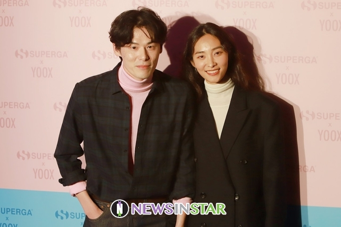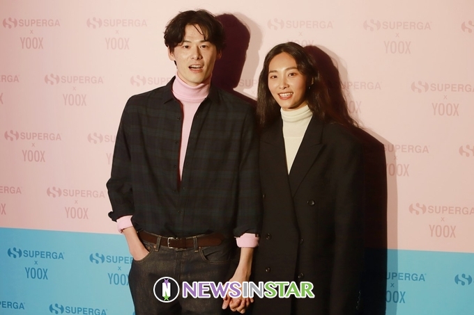 24일 오후 서울시 강남구 신사동 애슐린 갤러리에서 육스(YOOX.COM)가 수페르가(Superga)와 함께 익스클루시브 커플 슈즈 컬렉션런칭을 기념해 모델 김원중-곽지영 부부가 참석해 포토타임을 위해 포즈를 취하고 있다.