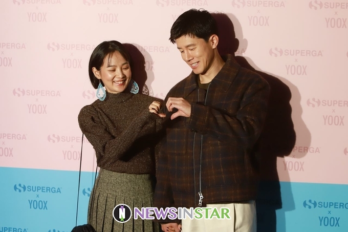 24일 오후 서울시 강남구 신사동 애슐린 갤러리에서 육스(YOOX.COM)가 수페르가(Superga)와 함께 익스클루시브 커플 슈즈 컬렉션런칭을 기념해 배우 김무열-윤승아 부부가 참석해 포토타임을 갖고 있다.