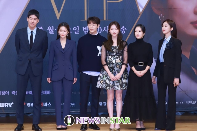 25일 오후 서울시 양천구 목동 SBS에서 새 월화드라마 'VIP'의 제작발표회가 열려 배우들이 참석해 단체 포토타임을 갖고 있다.