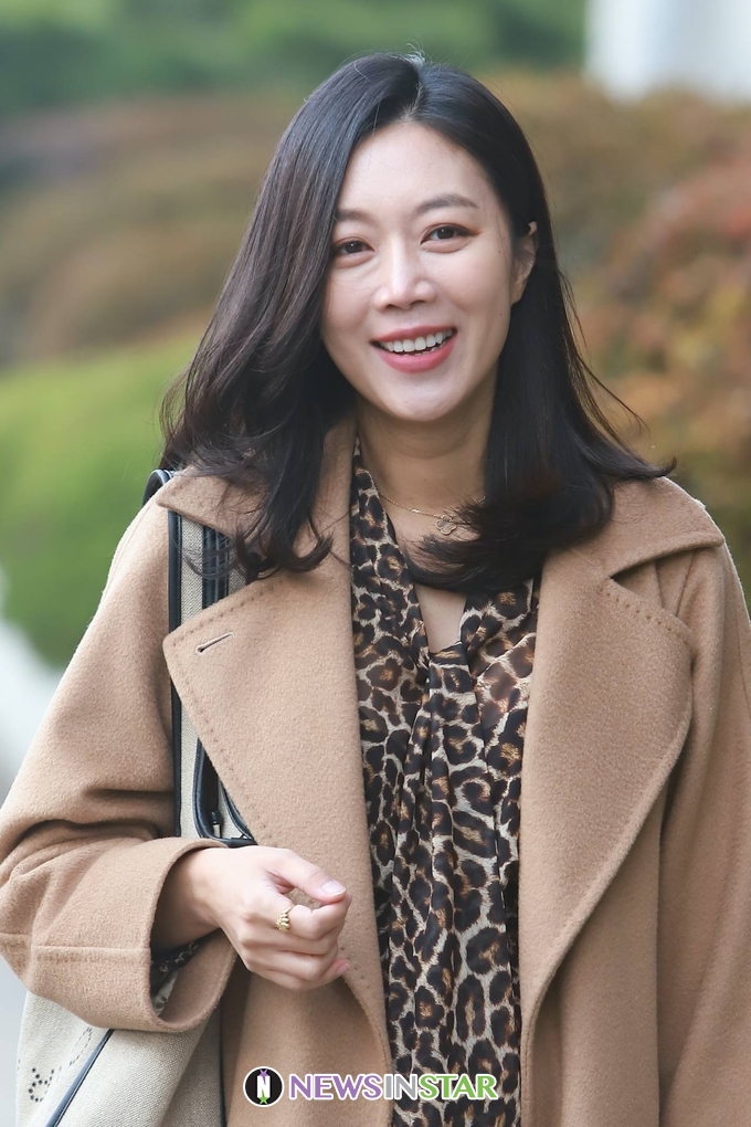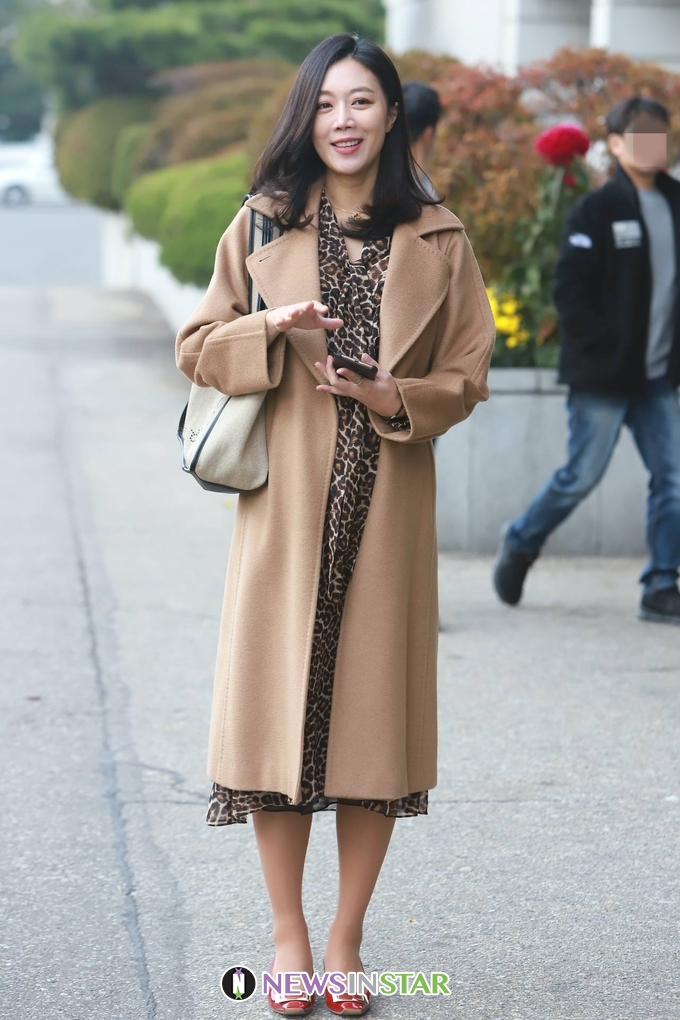 이날 서현진 아나운서가 출근길에 포즈를 취하고 있다.