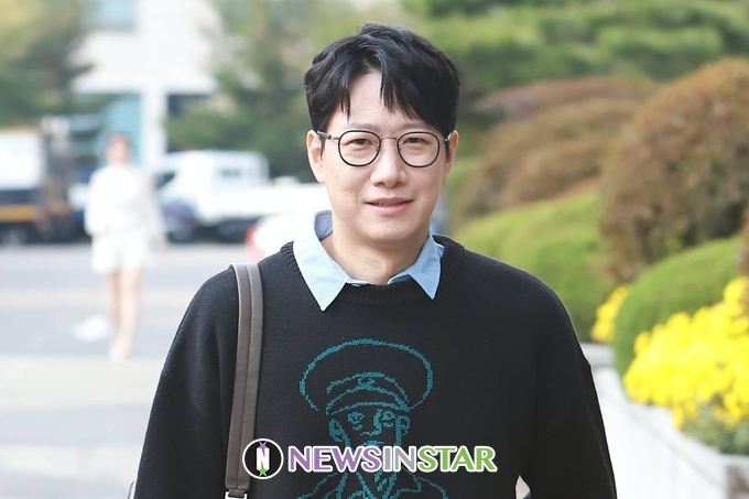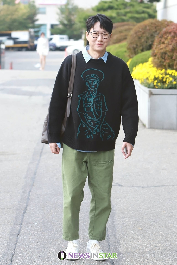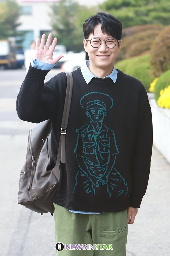 이날 조우종이 출근길에 포즈를 취하고 있다.