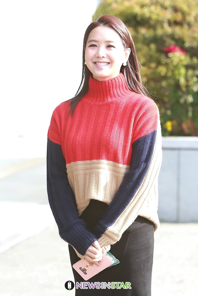 이날 이지애 아나운서가 출근길에 포즈를 취하고 있다.
