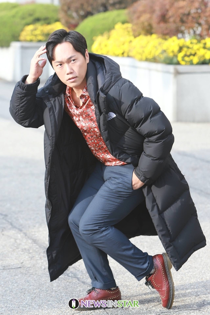 이날 송진우가 출근길에 포즈를 취하고 있다.