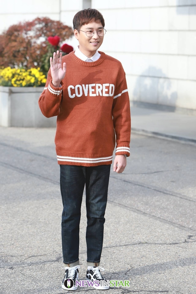 이날 허정민이 출근길에 포즈를 취하고 있다.