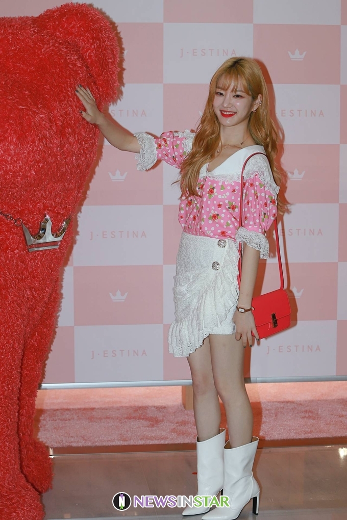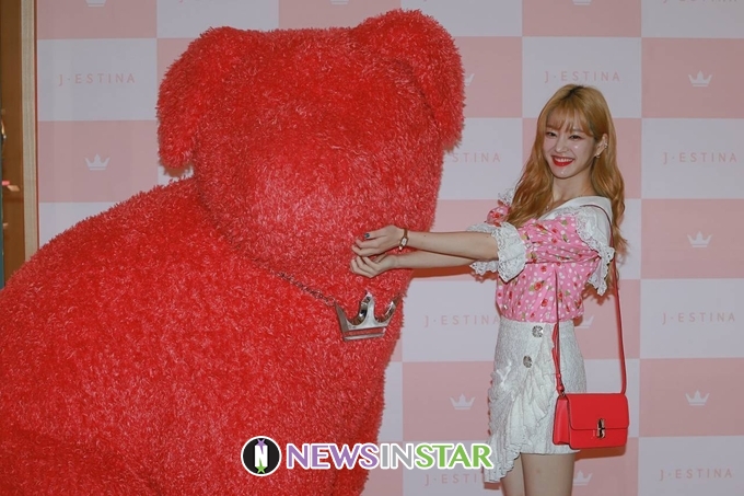 2일 오후 경기도 성남시 분당구 백현동 현대백화점 판교점에서 제이에스티나(J.ESTINA)의 '핑크 라운지(Pink Lounge)' 팝업스토어 오픈 행사가 열려 가수 겸 배우 이유비가 참석해 포토타임을 갖고 있다.
