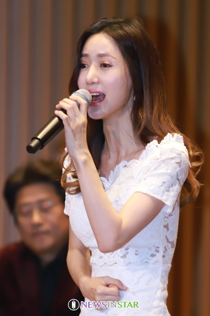 11월 5일 오전 서울시 강남구 역삼동 두원아트홀에서 ‘Voice of Winter 임태경 단독 콘서트’ 기자간담회가 열려 뮤지컬 배우 임태경, 마이클 리, 박홍주, 지휘자 서희태가 참석해 박홍주가 무대를 선보이고 있다.
