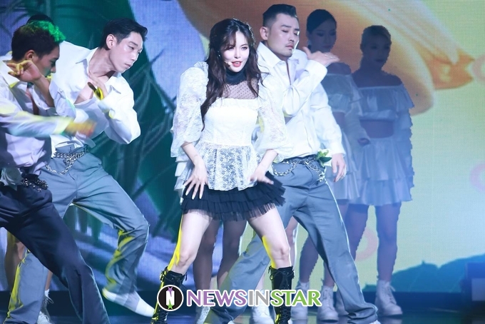 5일 오후 서울시 용산구 한남동 블루스퀘어에서 솔로 현아의 싱글 앨범 '플라워샤워(Flower Shower)' 발매 기념 쇼케이스가 열려 현아가 포토타임을 갖고 있다.