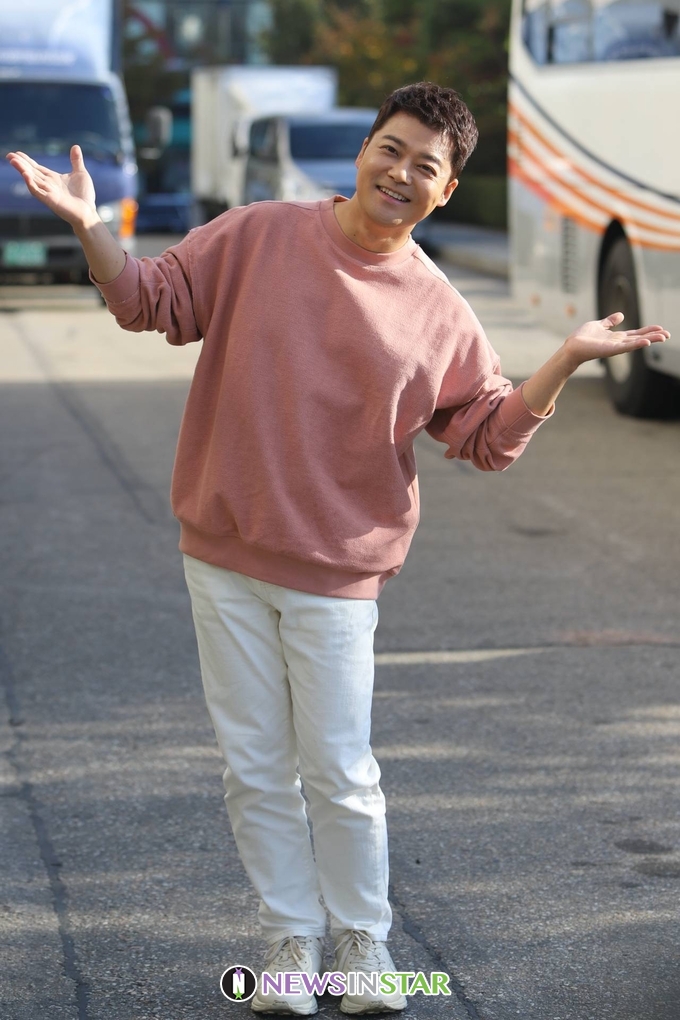 이날 전현무가 출근길에 포즈를 취하고 있다.