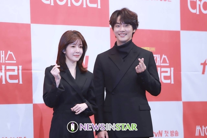 13일 오후 서울시 강남구 논현동 임피리얼 팰리스 서울에서 tvN 새 수목드라마 '싸이코패스 다이어리’ 제작발표회가 열려 배우 윤시윤, 정인선이 참석해 포토타임을 갖고 있다.