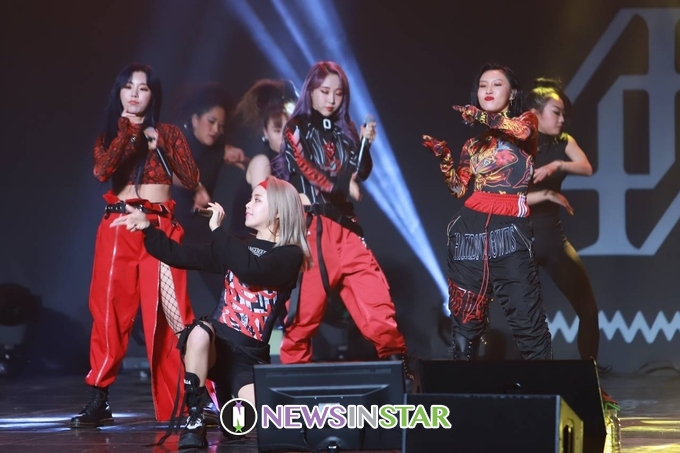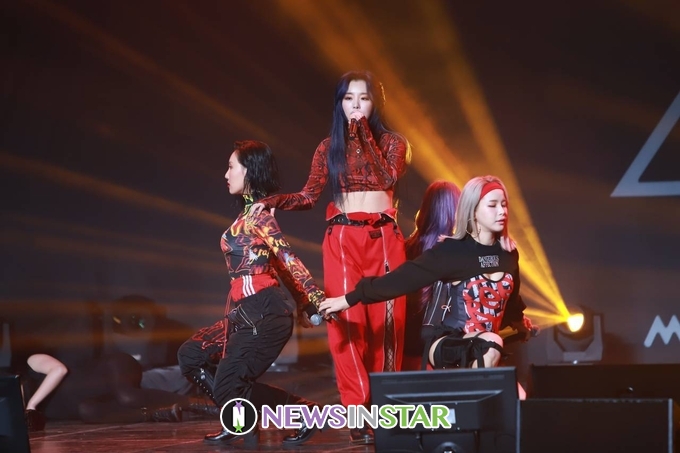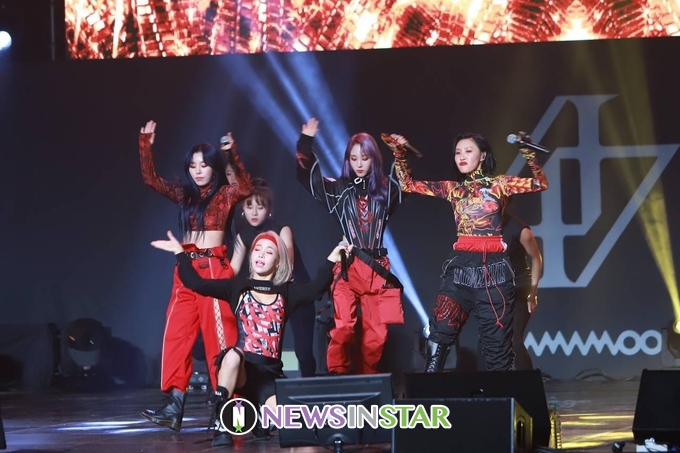 14일 오후 서울시 동대문구 회기동 경희대학교 평화의전당에서 걸그룹 마마무(MAMAMOO)의 두 번째 정규앨범 'reality in BLACK' 발매 기념 컴백 쇼케이스가 열려 수록곡 '우린 결국 다시 만날 운명이었지(Destiny)' 무대를 선보이고 있다.