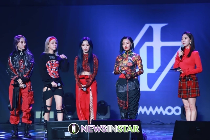 14일 오후 서울시 동대문구 회기동 경희대학교 평화의전당에서 걸그룹 마마무(MAMAMOO)의 두 번째 정규앨범 'reality in BLACK' 발매 기념 컴백 쇼케이스가 이지애 아나운서의 진행으로 열렸다.