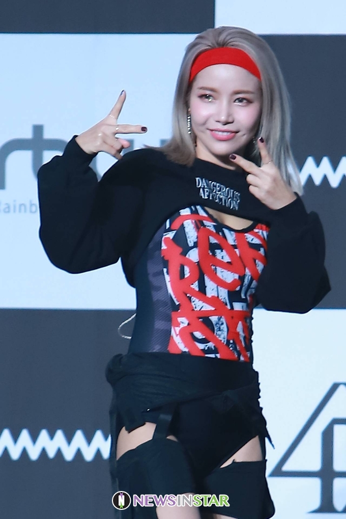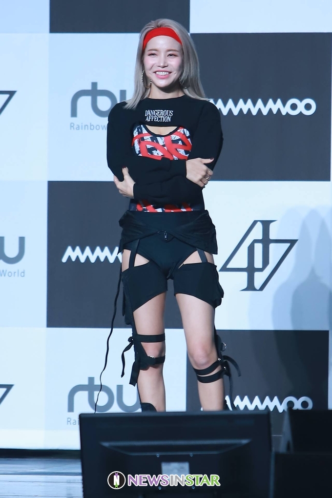 14일 오후 서울시 동대문구 회기동 경희대학교 평화의전당에서 걸그룹 마마무(MAMAMOO)의 두 번째 정규앨범 'reality in BLACK' 발매 기념 컴백 쇼케이스가 열려 솔라가 포토타임을 갖고 있다.