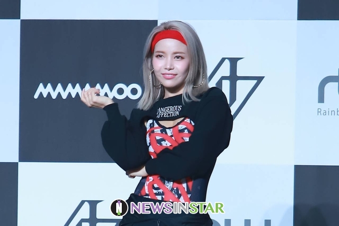 14일 오후 서울시 동대문구 회기동 경희대학교 평화의전당에서 걸그룹 마마무(MAMAMOO)의 두 번째 정규앨범 'reality in BLACK' 발매 기념 컴백 쇼케이스가 열려 솔라가 포토타임을 갖고 있다.