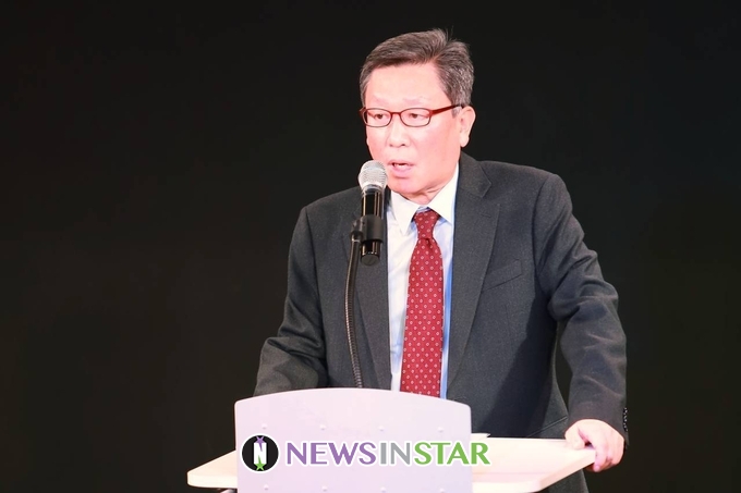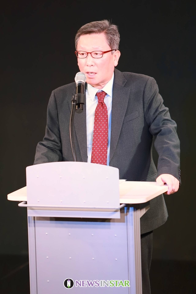 이날 신성통상 황대규 대표이사가 인사말을 하고 있다.