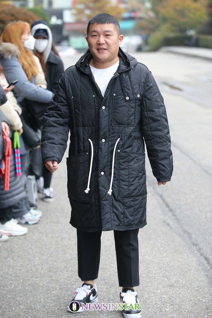 이날 조세호가 출근길에 포즈를 취하고 있다.