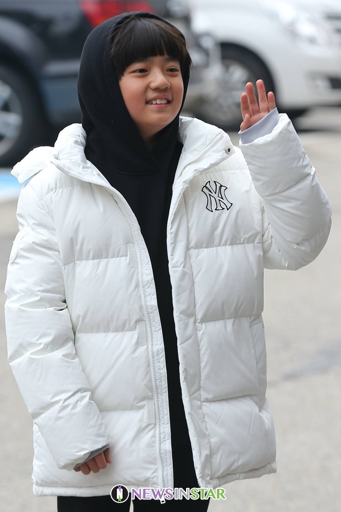 이날 김강훈(아역 배우)가 출근길에 포즈를 취하고 있다.