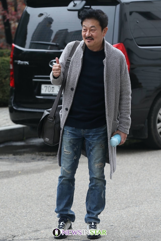 이날 박준규가 출근길에 포즈를 취하고 있다.