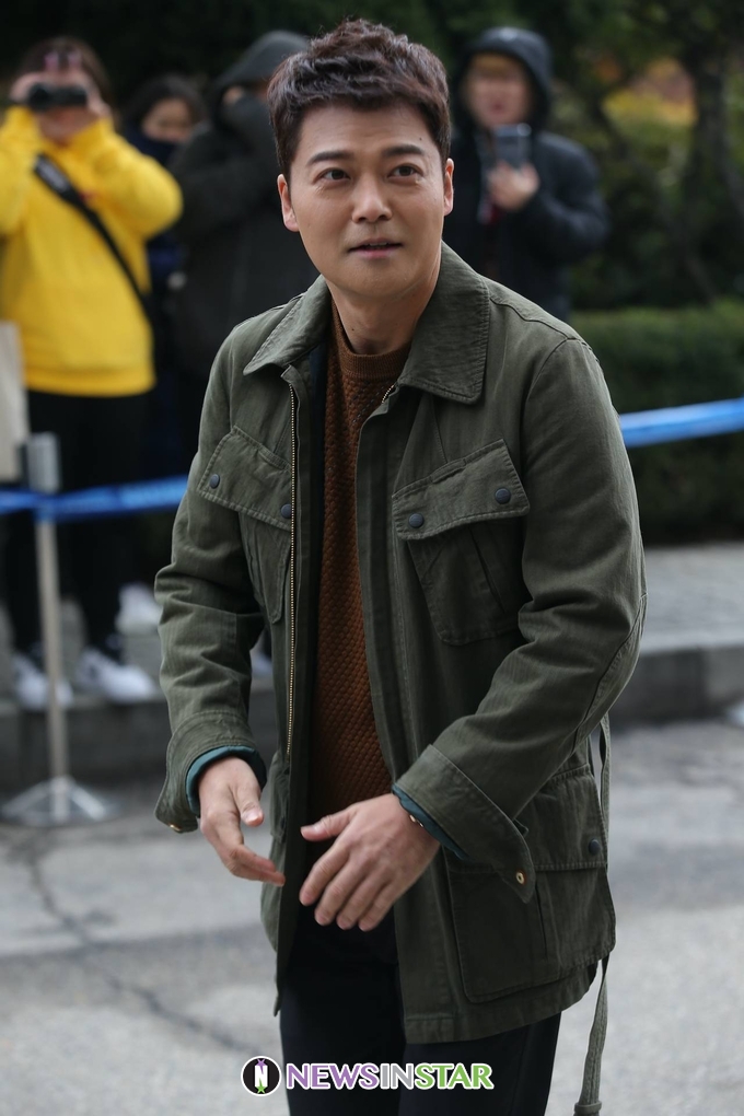 이날 전현무 가 출근길에 포즈를 취하고 있다.