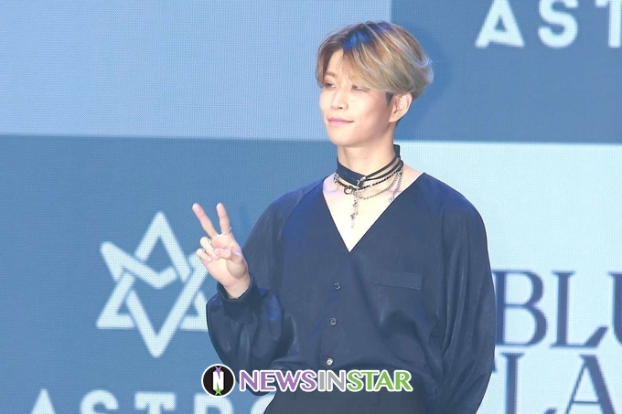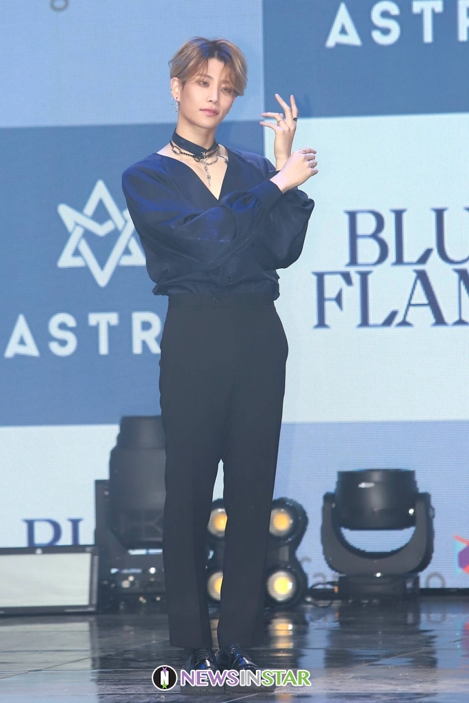 20일 오후 서울시 광진구 광장동 예스24 라이브홀에서 아스트로(ASTRO)의 여섯 번째 미니 앨범 '블루 플레임(BLUE FLAME)' 발매 기념 쇼케이스가 열려 MJ가 포토타임을 갖고 있다.