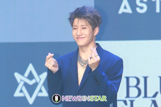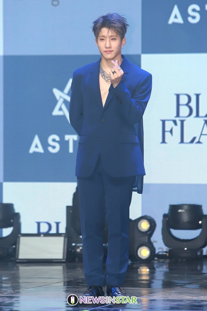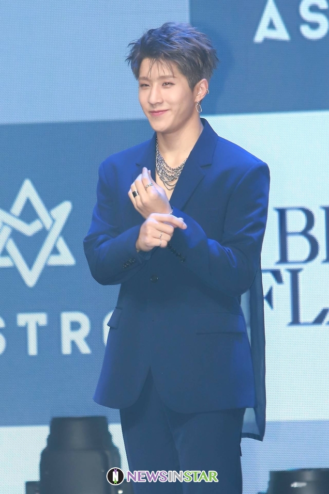 20일 오후 서울시 광진구 광장동 예스24 라이브홀에서 아스트로(ASTRO)의 여섯 번째 미니 앨범 '블루 플레임(BLUE FLAME)' 발매 기념 쇼케이스가 열려 진진이 포토타임을 갖고 있다.