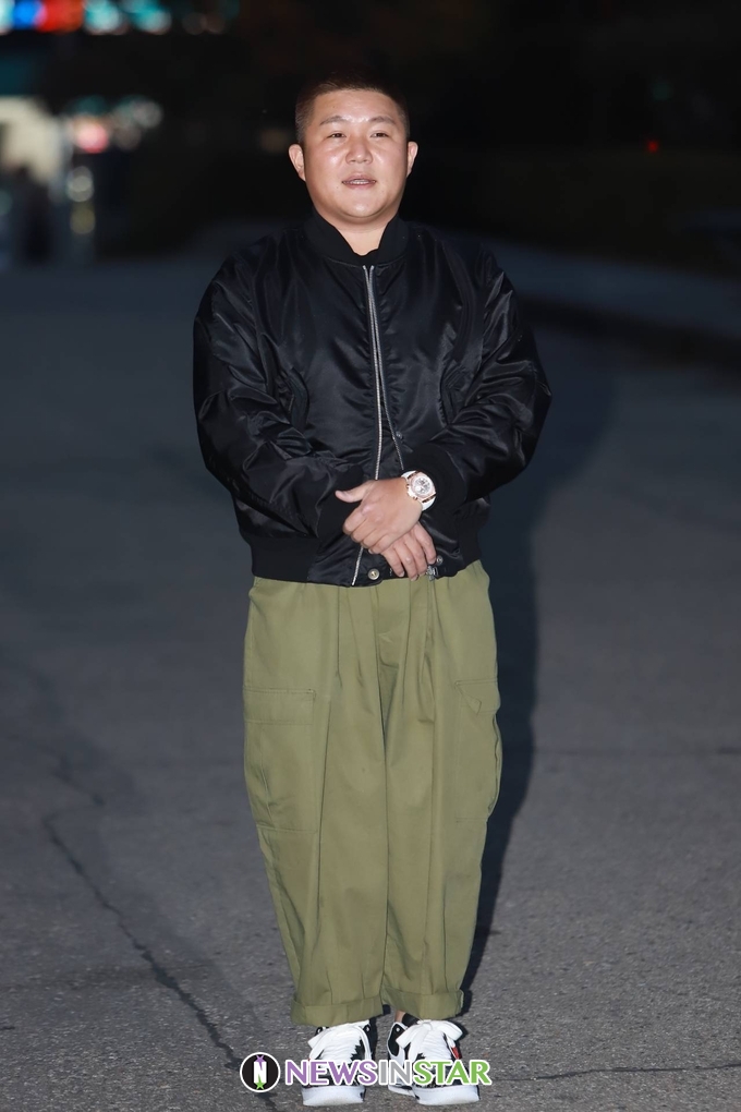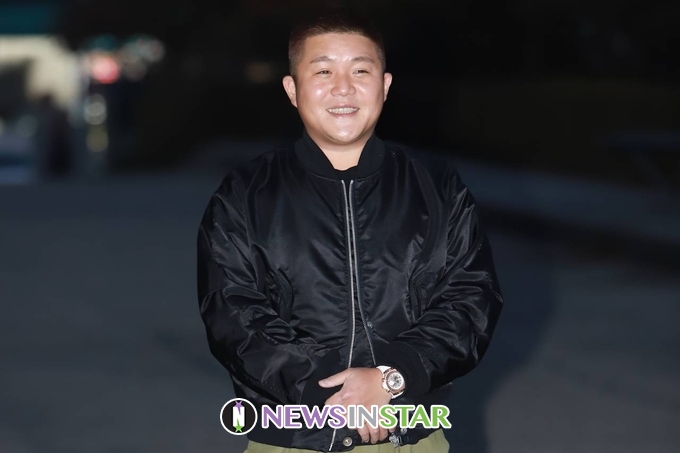 이날 조세호가 출근길에 포즈를 취하고 있다.