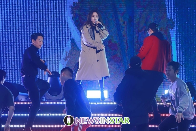 12월 1일 오후 서울시 송파구 잠실동 '잠실실내체육관'에서 '미스트롯' 전국투어 콘서트 시즌2 '청춘' 서울 콘서트 마지막날 리허설 현장 공개가 열려 숙행이 리허설 무대를 선보이고 있다.