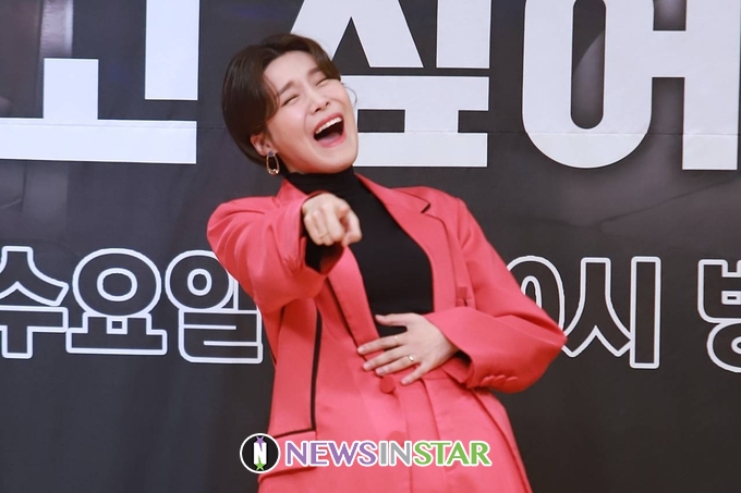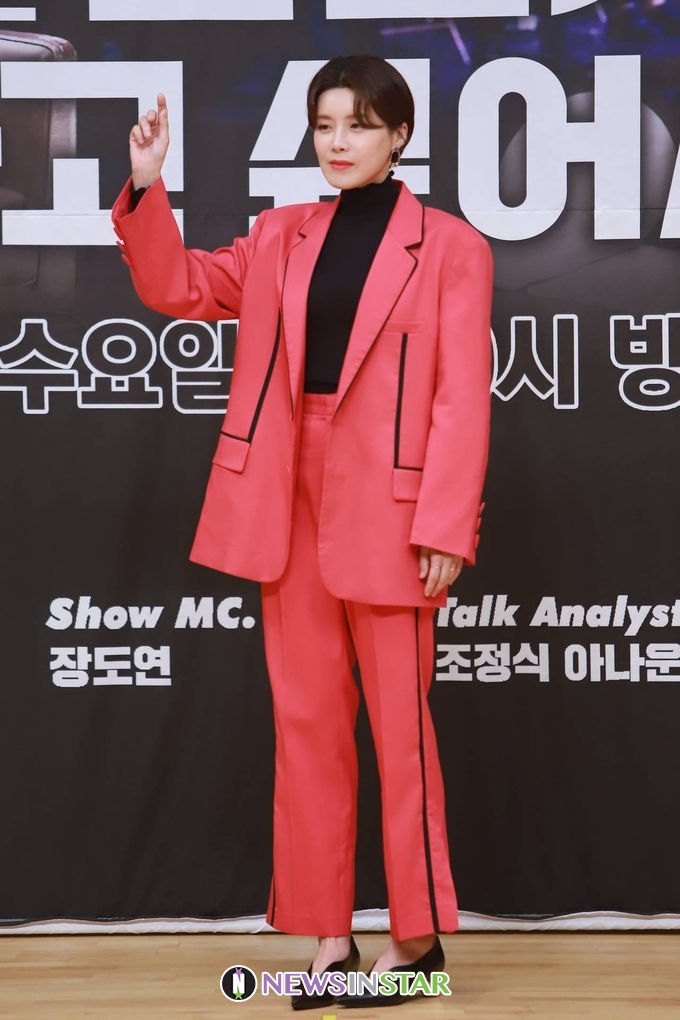 12월 2일 오후 서울시 양천구 목동 SBS에서 배우 이동욱이 단독 호스트로 진행하는 토크쇼 '이동욱은 토크가 하고 싶어서' 제작발표회가 열려 배우 장도연이 포토타임을 갖고 있다.
