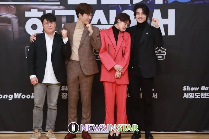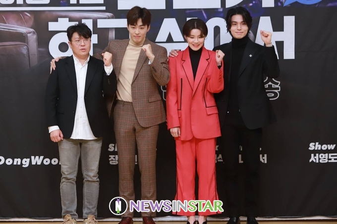 12월 2일 오후 서울시 양천구 목동 SBS에서 배우 이동욱이 단독 호스트로 진행하는 토크쇼 '이동욱은 토크가 하고 싶어서' 제작발표회가 열려 배우 이동욱, 장도연, 조정식이 단체 포토타임을 진행하고 있다.