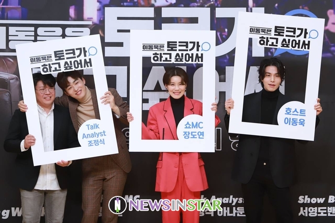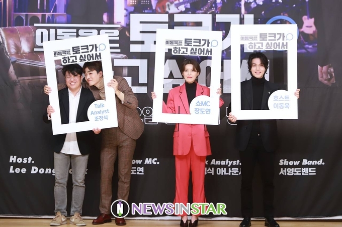 12월 2일 오후 서울시 양천구 목동 SBS에서 배우 이동욱이 단독 호스트로 진행하는 토크쇼 '이동욱은 토크가 하고 싶어서' 제작발표회가 열려 배우 이동욱, 장도연, 조정식이 단체 포토타임을 진행하고 있다.