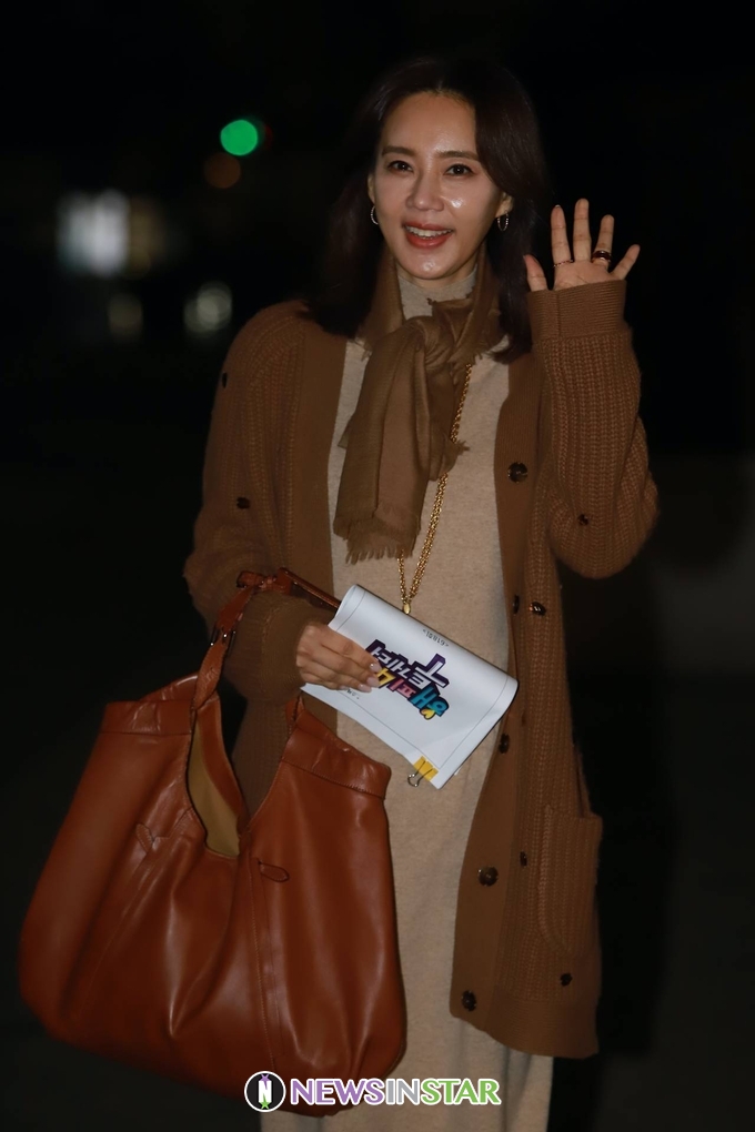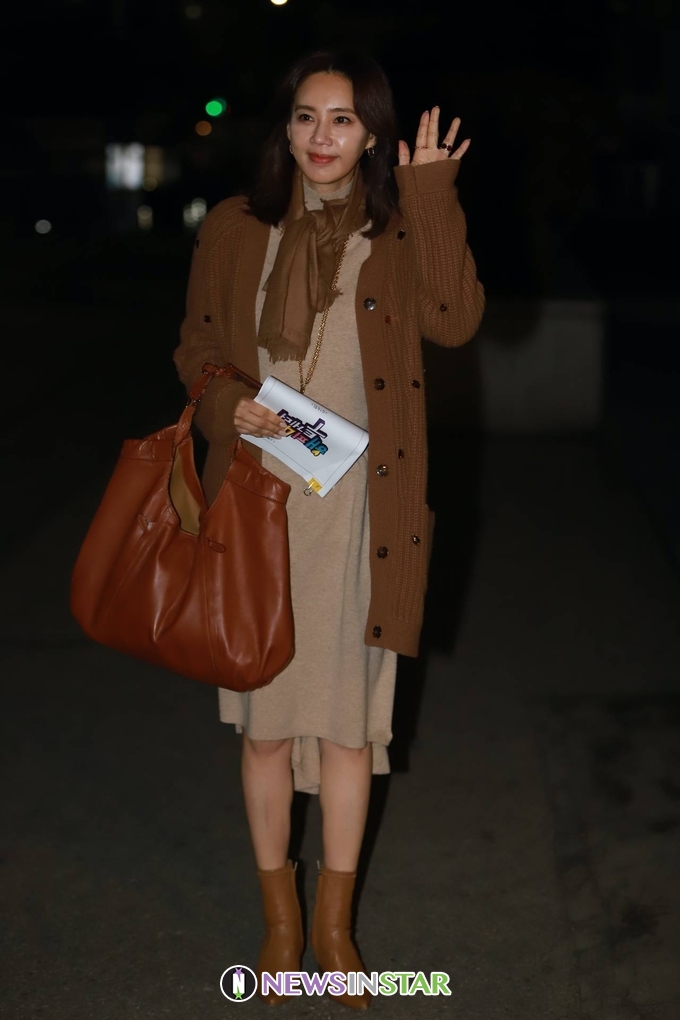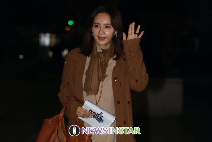 이날 오현경이 출근길에 포즈를 취하고 있다.