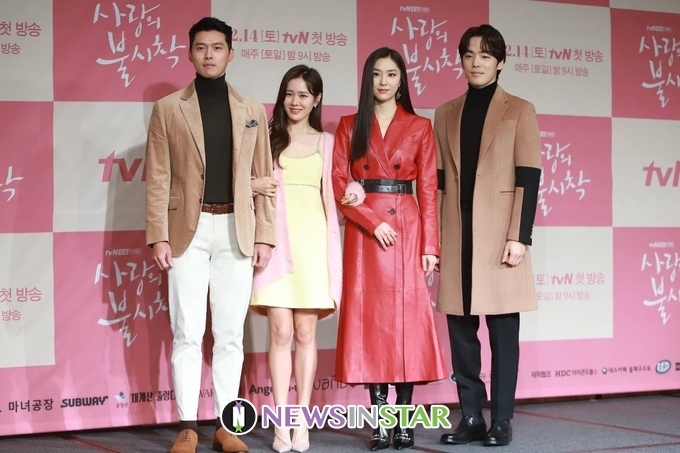 9일 오후 서울시 종로구 당주동 포시즌스호텔 서울에서 tvN 새 토일드라마 '사랑의 불시착' 제작발표회가 열려 배우 현빈 손예진 서지혜 김정현이 참석해 포토타임을 갖고 있다.