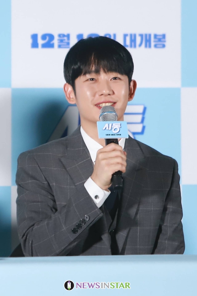 10일 오후 서울시 광진구 자양동 롯데시네마 건대입구에서 영화 '시동'의 언론 시사회가 열려 시사회 후 배우 정해인이 참석해 질의 응답을 하고 있다.