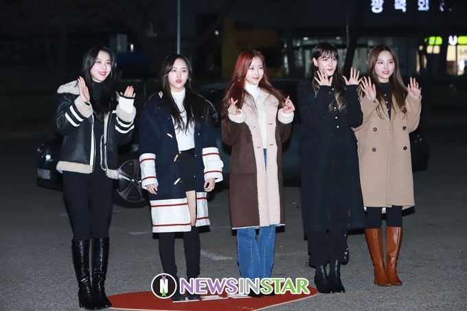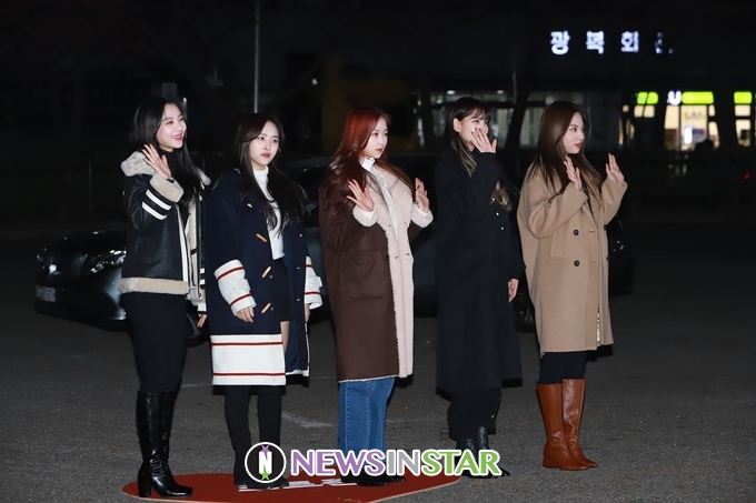 12월 13일 오전 서울시 영등포구 여의도 KBS 신관 공개홀에서 열린 '뮤직뱅크(‘MUSICBANK) 리허설에 참석하기 위해 밴디트(이연, 송희, 정우, 시명, 승은)가 출근하고 있다.