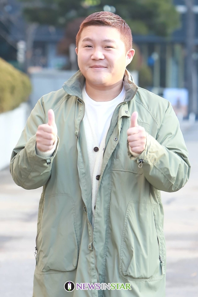 이날 조세호가 출근길에 포즈를 취하고 있다.