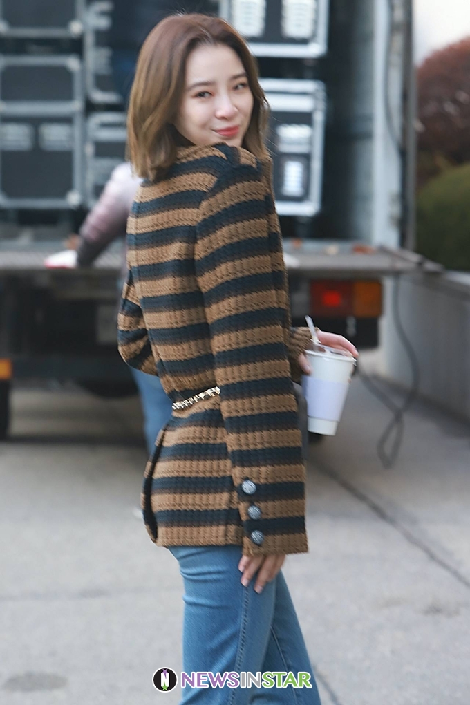 이날 아이린 출근길에 포즈를 취하고 있다.